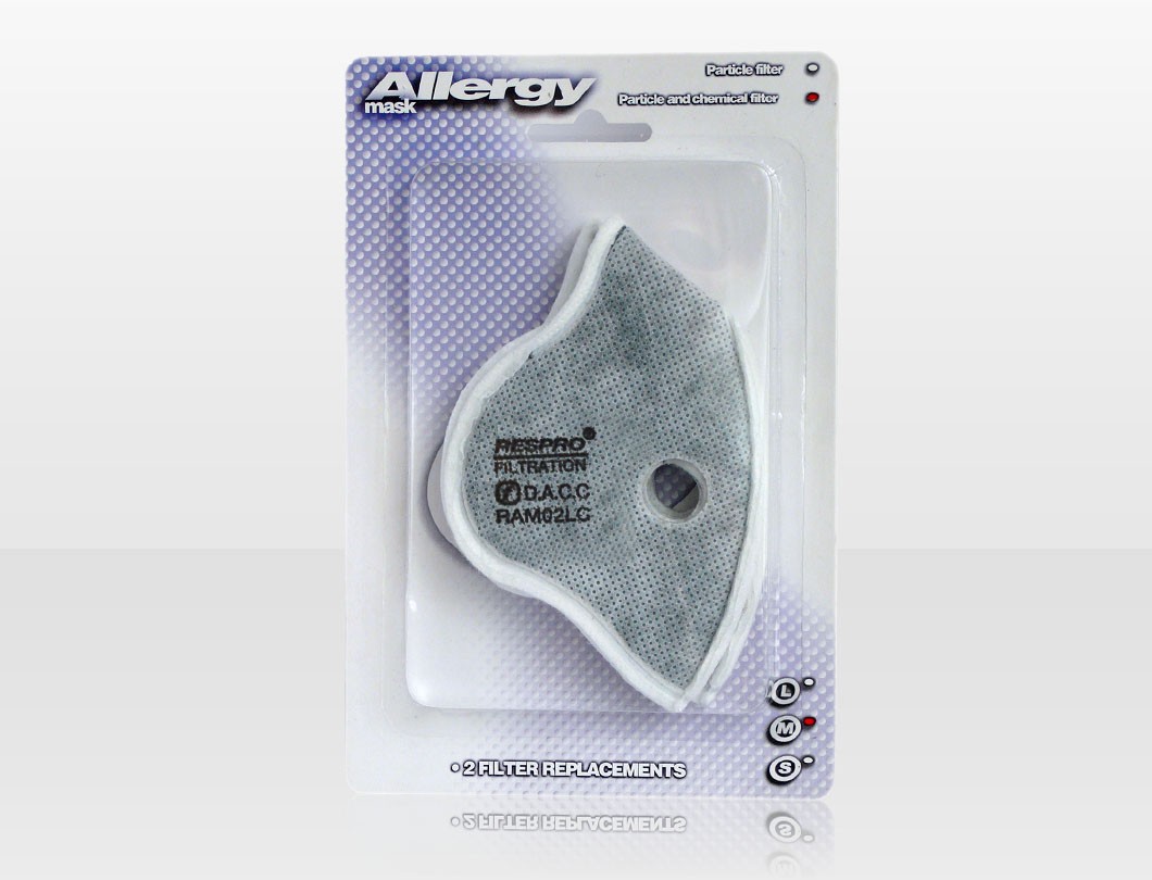 Filtrul pentru particule si substante chimice este un filtru combinat alcatuit din 2 straturi: filtru tip HEPA confectionat din polipropilena care filtreaza pulberi fine respirabile, submicronice pentru particule (acelasi cu care este echipata masca Allergy) + filtru Dynamic Activated Charcoal Cloth (DACC™) pentru filtrarea substantelor chimice care pot irita sistemul respirator (acizi, alcooli, hidrocarburi, aldehide, cetone, compusi nitrogen, compusi sulfurosi, etc).